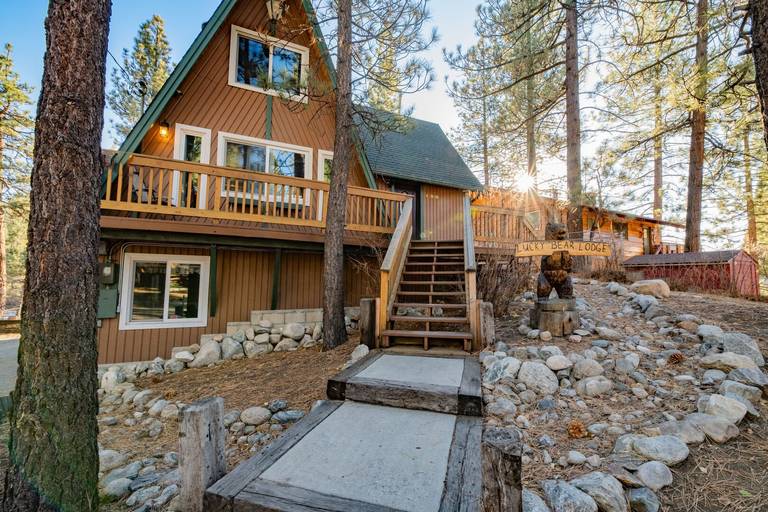 Lucky Bear Lodge is the perfect mountain escape. This beautiful property is located in a quiet area with a sliver of a ski slope view and is walking distance to the ski shuttles, Bear Mountain Golf Course, and the new Big Bear Alpine Zoo. This multi level home is perfect for small family gatherings and more!