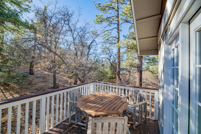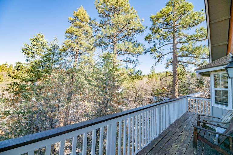 Nestled in the trees in the private serene setting of Moonridge, this beautiful two-story chalet awaits your next mountain getaway. Accented with wood ceilings and French doors, this cabin provides a cozy and comfortable home away from home! The large lot also has the perfect slope great for snow sledding in the Winter! Nearby Bear Mountain Ski Resort, golf course, Alpine Zoo and hiking trails. Just a short drive to the lake, Village, Snow Play, Convention Center and more!