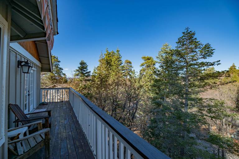 OUTDOORS - Patio furniture and charcoal barbecue. Enjoy the gorgeous views and fresh mountain air from one of the spacious decks.