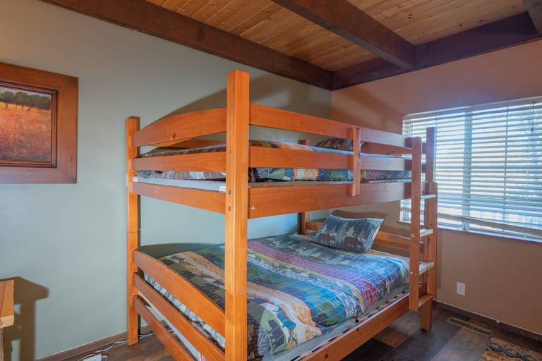 ROOMS & BEDS - 2 bedroom, 2 bath. Downstairs first bedroom has a king bed, TV, and shared bathroom. Downstairs second bedroom has a double/double bunk bed, TV, and shared bathroom. Extra blankets and pillows are available.