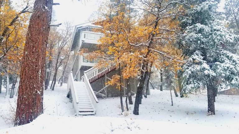 Snow covered Big Bear Cool Cabins Lunar Lodge front [22]