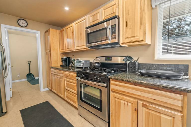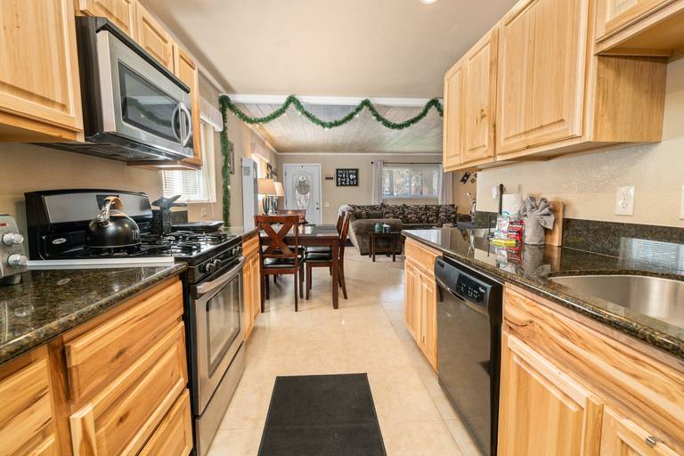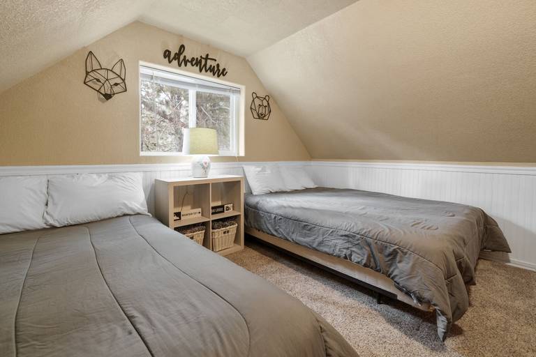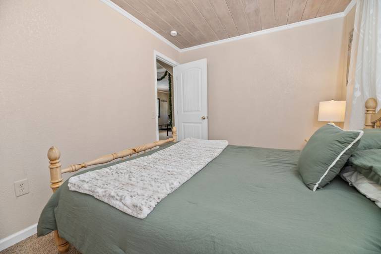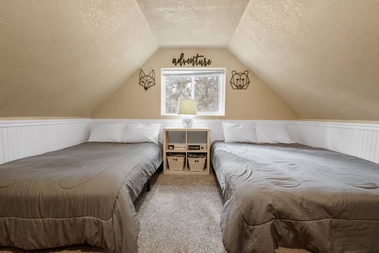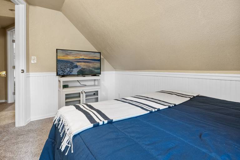 ROOMS & BEDS - 3 bedroom, 1 bath. Downstairs first bedroom has a queen bed and TV. Upstairs second bedroom has a queen bed and TV. Third bedroom has a double bed, queen bed, and TV. Living room has a sleeper sofa. Extra blankets and pillows are available.
