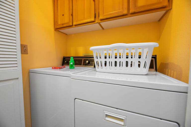 AMENITIES - Smart TVs, streaming apps along with fast Wi-Fi and Blu-ray DVD player with DVD collection. Board games and card games. Relax near the cozy rock wood burning fireplace. Laundry room with side by side washer/dryer.