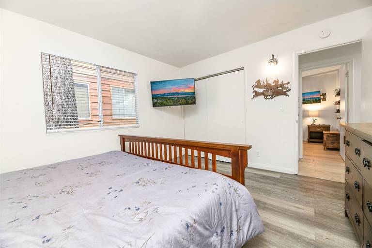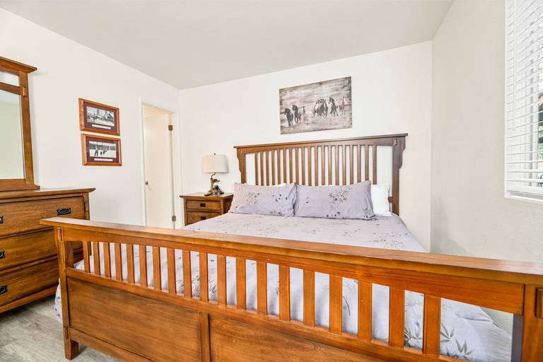 ROOMS & BEDS - 3 bedrooms, 2 baths. The Master bedroom has a king bed, TV, and private bath. The second bedroom has a queen bed and TV. The third bedroom has a bunk bed with a trundle and TV. Extra blankets and pillows are available.