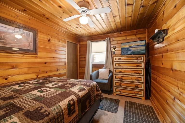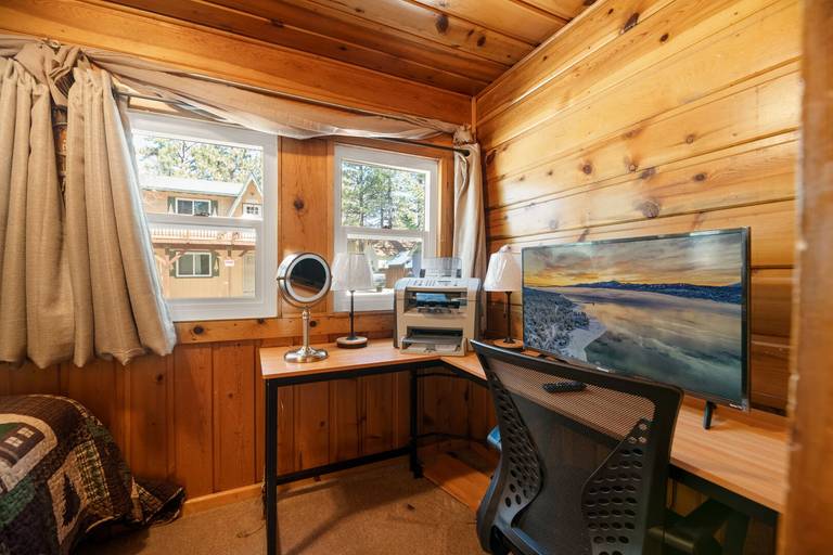 This classic wood cabin is in a prime location! Just a short walk to The Village, the Alpine Slide, restaurants, and the lake. Just steps to the National Forest and hiking trails. Also offered is a comfortable home office to meet your work or study needs while visiting Big Bear. Whether you're here for work or play, Pine Forest Cabin has everything you need for a true mountain getaway.