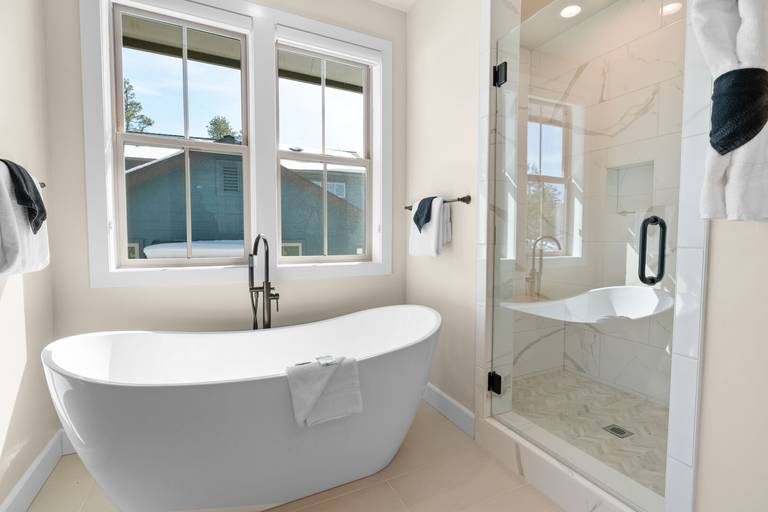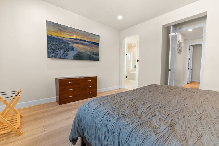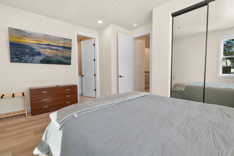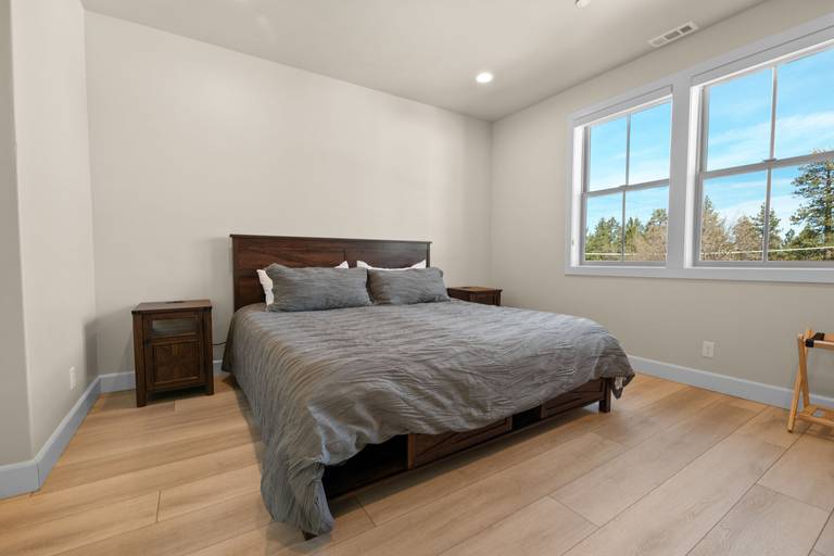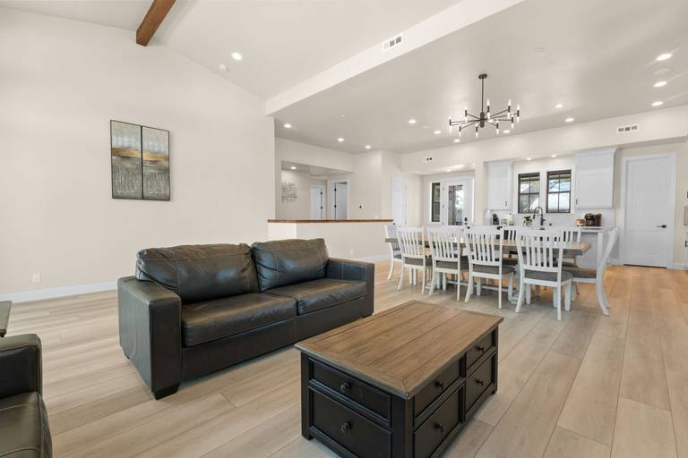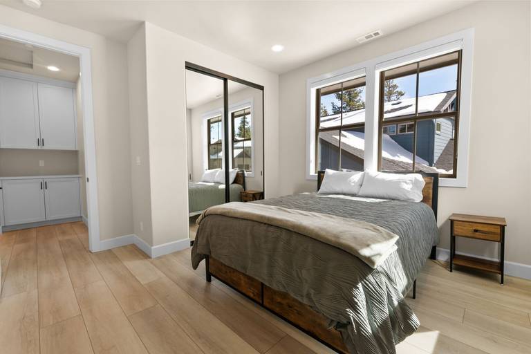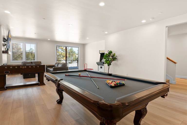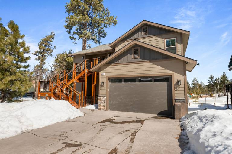 If you are looking for upscale living with the convenience of being within walking distance to The Village and Lake then Pine Meadow is the perfect place for your group! A newly built home (2024) with living room, kitchen, and two master bedrooms upstairs. With vaulted ceilings, light and bright, gourmet kitchen, high-end flooring and fixtures, central heat with AC, an oversized garage, separate laundry room, this custom upscale home was designed for the ultimate Big Bear retreat!
