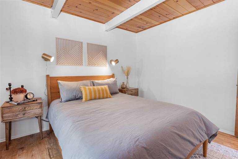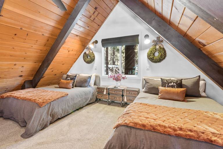 ROOMS & BEDS - 1 bedroom, loft, 1 bath. Downstairs first bedroom has a queen bed. Second bedroom has 2 double beds. Extra blankets and pillows are available.