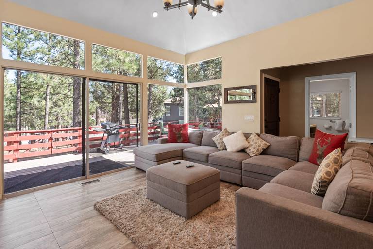 Recently remodeled contemporary mountain home with stunning floor to ceiling windows, showing off the beautiful Big Bear scenery. Bright and fresh with plenty of natural lighting. Nearby local parks, hiking trails, restaurants, Snow Play and Convention Center. Just a short drive to the lake, The Village, slopes, golf course, and more!