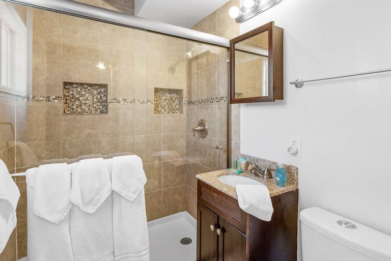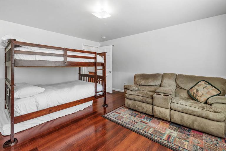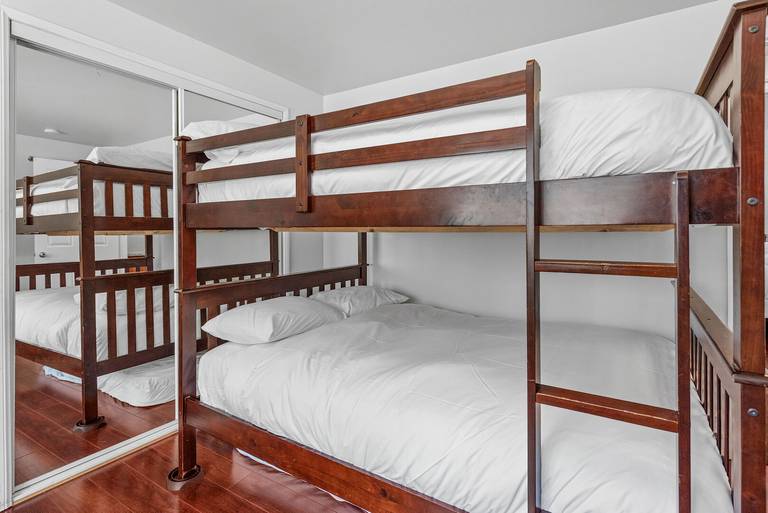 ROOMS & BEDS - 2 bedroom, 2 bath. Upstairs master bedroom has a queen bed, smart TV, and private bath. Second bedroom has a double/double bunk bed, smart TV. Extra blankets and pillows are available.
