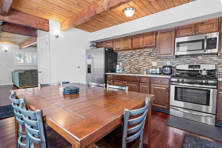 This modern, luxurious and charming gambrel-style cabin is set up with everything you need for a comfortable getaway! The Rock House is the perfect cabin for family and friends. Conveniently located within a short walk to Big Bear Snow Play, Big Bear Speedway, and Oktoberfest!