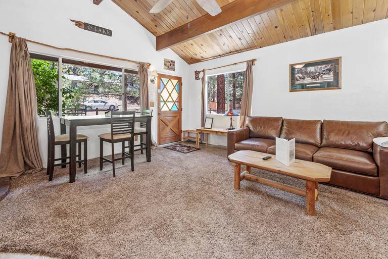 The Romantic Getaway is tucked in between the trees, within walking distance to a few great restaurants, breakfast places, stores, Big Bear Snow Play, hiking, Oktoberfest, and horseback riding.