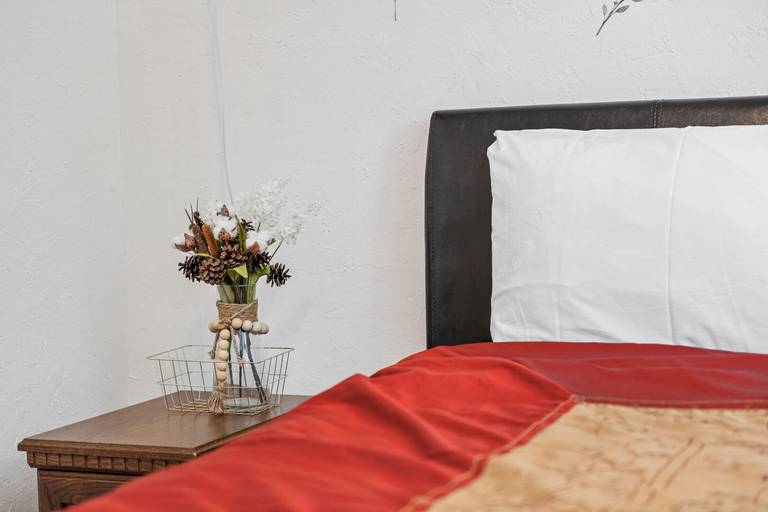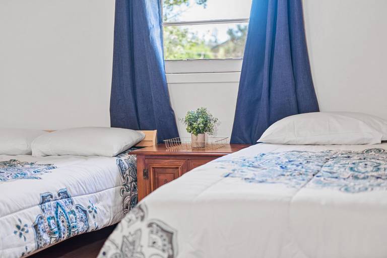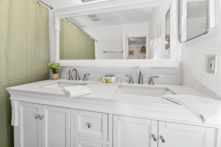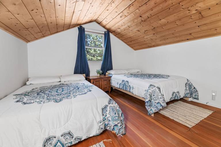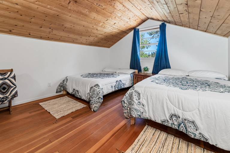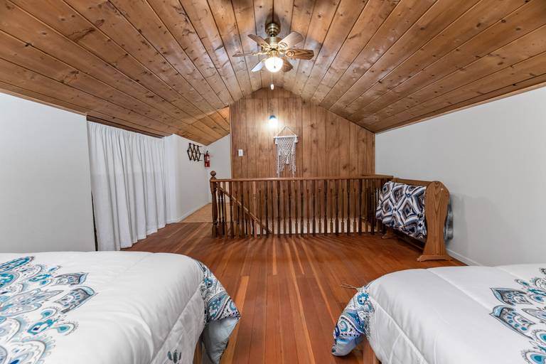 ROOMS & BEDS - 2 bedroom, 2 bath. The downstairs master bedroom has a queen memory foam bed and private bath with an all-new quartz-topped double vanity and new shower tile. The upstairs second bedroom 2 double memory foam beds. Extra blankets and pillows are available.