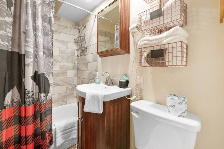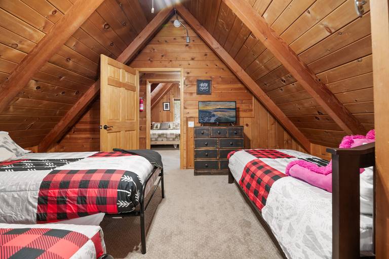 ROOMS & BEDS - 3 bedrooms, 1 bath. Downstairs master bedroom has a queen bed and bath. Upstairs second bedroom has a queen bed. Upstairs third bedroom has 3 twin beds and smart TV. Extra blankets and pillows are available.
