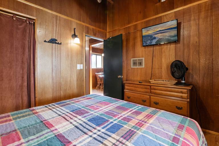 ROOMS & BEDS - 1 bedroom, 1 bath. First bedroom has a queen bed, ceiling fan, and TV. Living room has a sleeper sofa. Extra blankets and pillows are available.