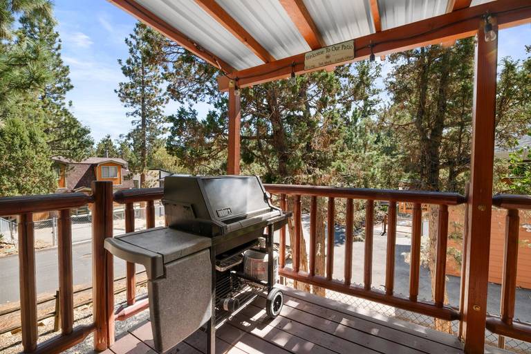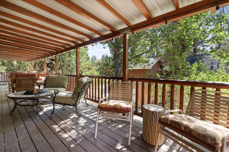 OUTDOORS - Large rear deck with gas fire pit, gas barbecue, and plenty of room to enjoy the beautiful mountain air.