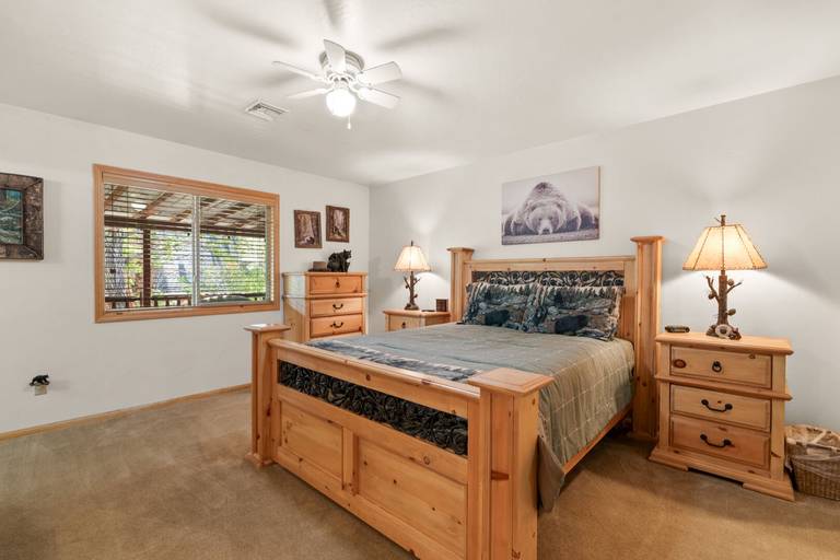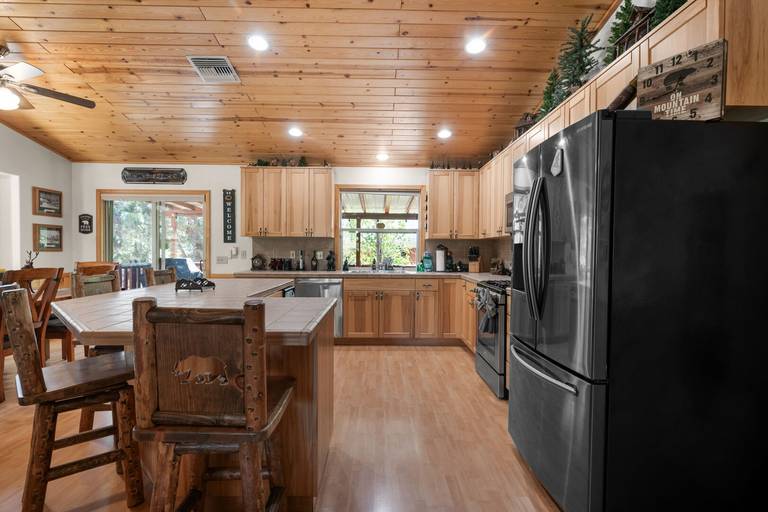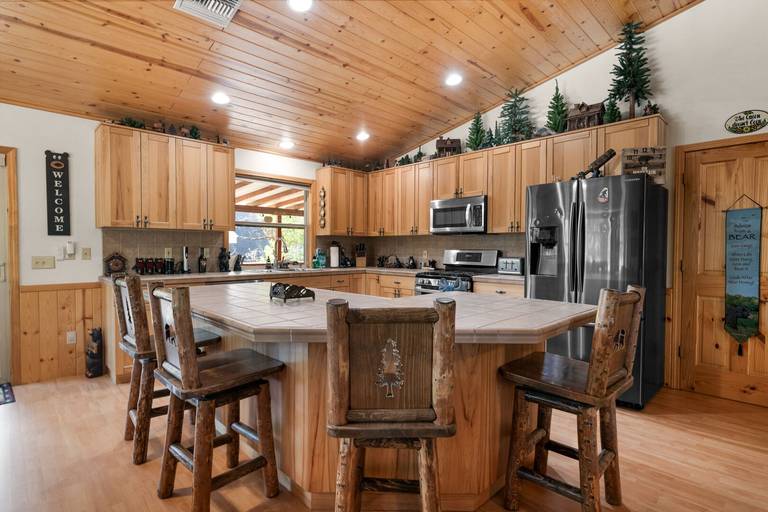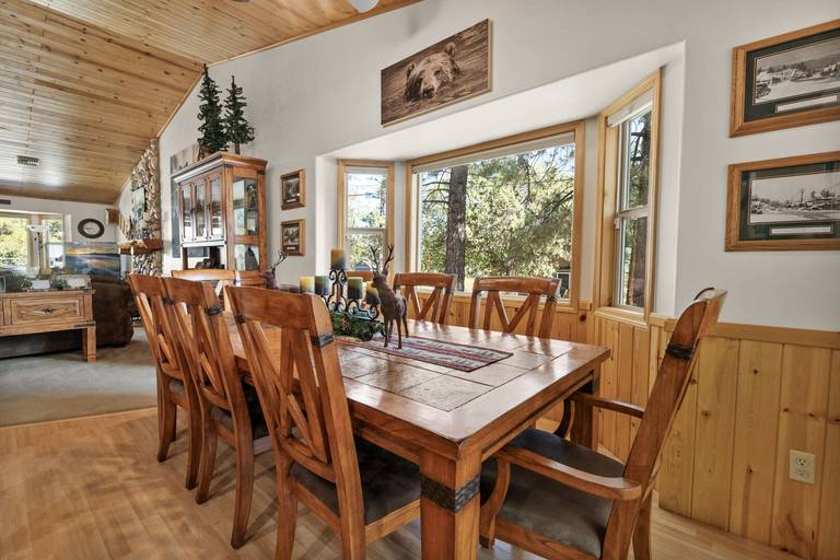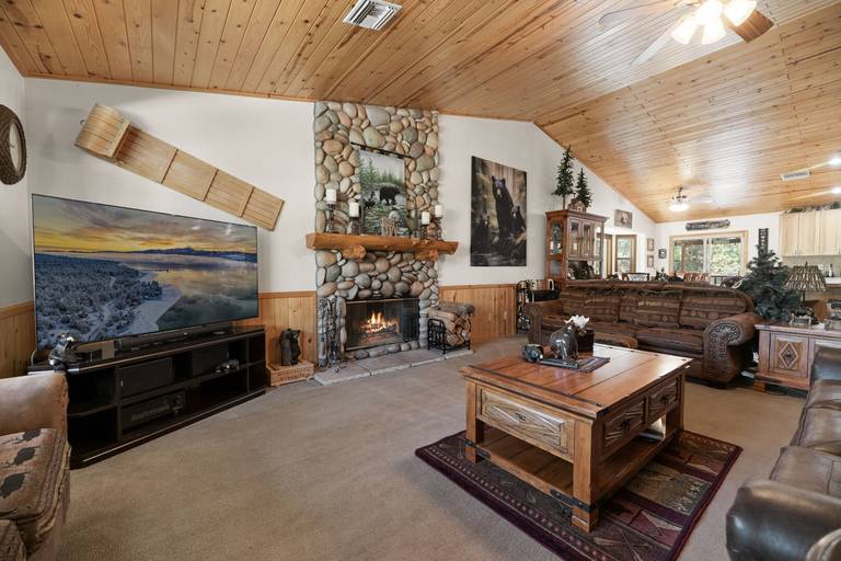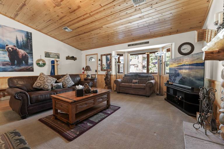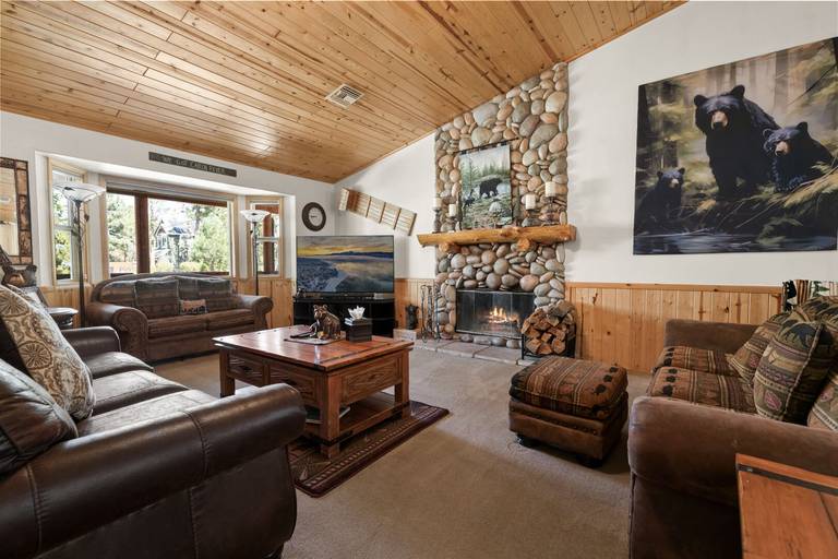 Spacious log home which provides the perfect atmosphere for your next Big Bear Getaway! This beautiful cabin features vaulted T & G ceilings within an open floor plan. Located in Sugarloaf bear the Nation Forest hiking trails, Sugarloaf Park, skate park, and dog park. Local eatery Kallan's Bar and Grill is within walking distance. Just a short drive to the Lake, Village, ski resorts, Snow Play, and more!
