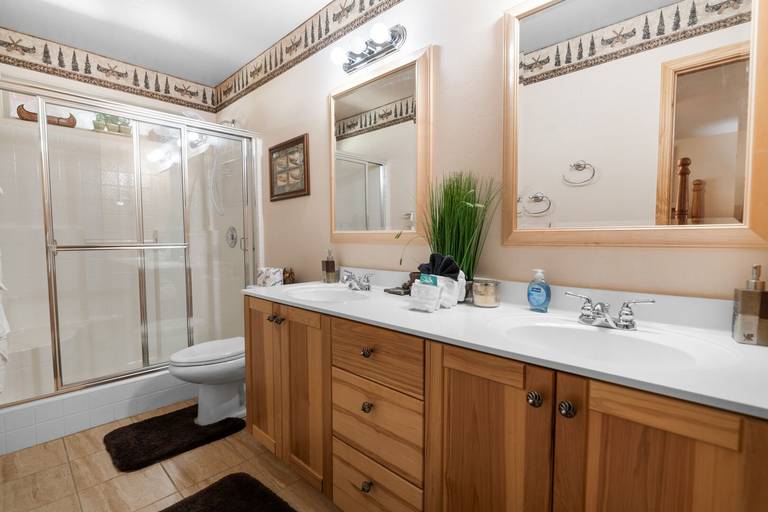 ROOMS & BEDS - 3 bedroom, 3 bath. First master bedroom has a king bed, ceiling fan, smart TV, and private bath with shower and double sinks. Second master bedroom has a queen bed, ceiling fan, smart TV, and private bath with shower and double sinks. Third bedroom has a queen bed, ceiling fan, and smart TV. Living room has a sleeper sofa. Extra blankets and pillows are available.