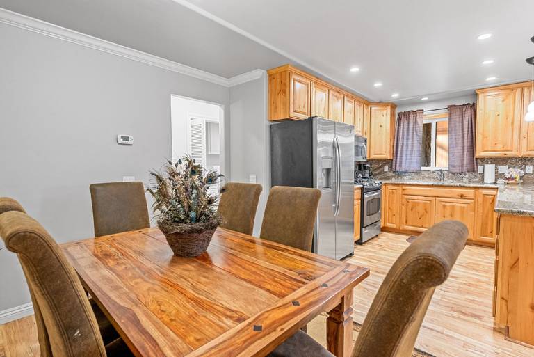 LIVING SPACE - Spacious 1300 sq ft home with living room, dining table, bar seating, 2 beautiful wood burning fireplaces, and plenty of comfortable living room seating.