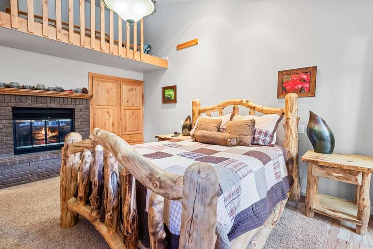 ROOMS & BEDS - 2 bedroom, 2 bath. Upstairs first bedroom has a king bed, smart TV, fireplace, and balcony. Upstairs second bedroom has a double bed. Extra blankets and pillows are available.