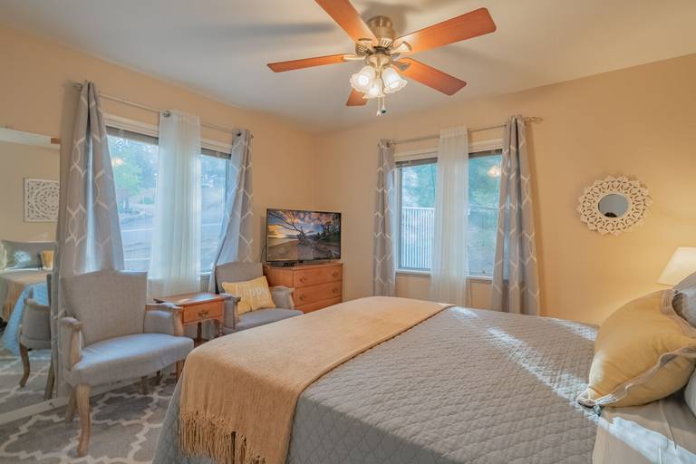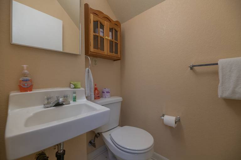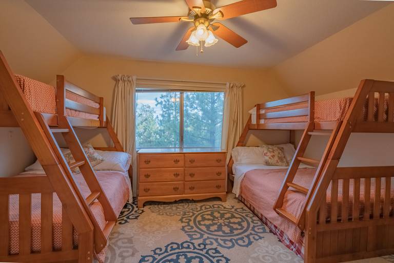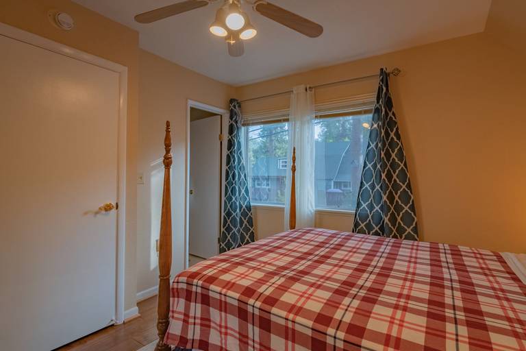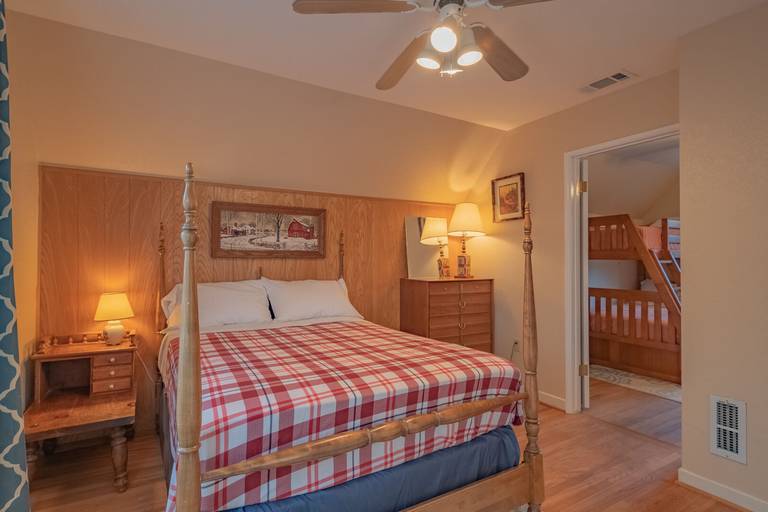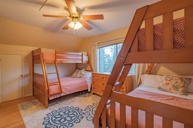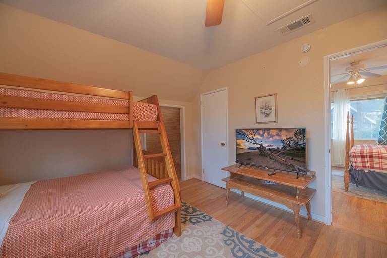 ROOMS & BEDS - 3 bedroom, 1.5 bath. Downstairs first bedroom has a queen bed and TV. Upstairs second bedroom has a queen bed. Upstairs third bedroom has two twin/double bunk beds. Extra blankets and pillows are available.