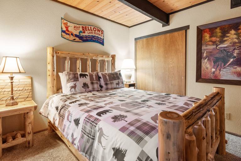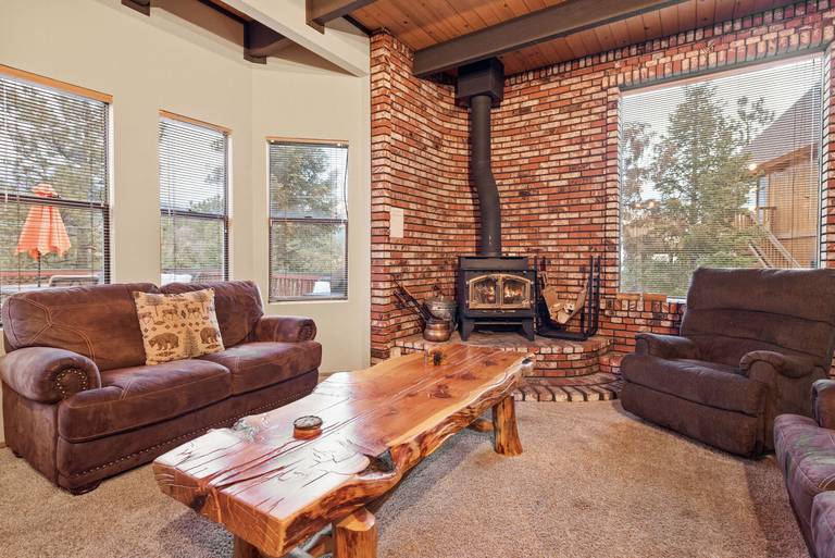 Located in the beautiful Moonridge area, this two-story cabin boasts gorgeous scenery year-round. Classic mountain style meets modern flare with gorgeous craftsmanship, natural wood accents, high beam wood ceilings, and more! Perfect for family gatherings and entertaining. Just a mile to Bear Mountain Ski Resort. Short drive to hiking trails, Alpine Zoo, Snow Play, the Village, lake and more!