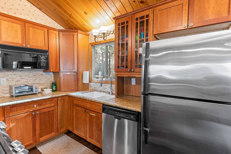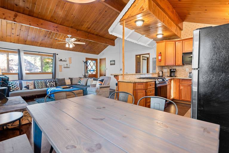 Perfect for couples or single family getaways, hidden away on a quiet street, yet extremely close to the hustle and bustle. Only miles from the Ski Resorts, Oktoberfest, and the Lake, it's a great spot to launch your mountain adventure. Large great room with cathedral ceilings, cozy fireplace, and a large dining area.