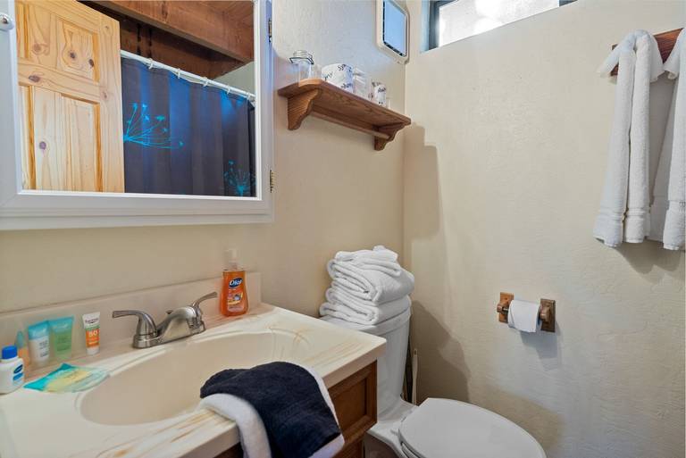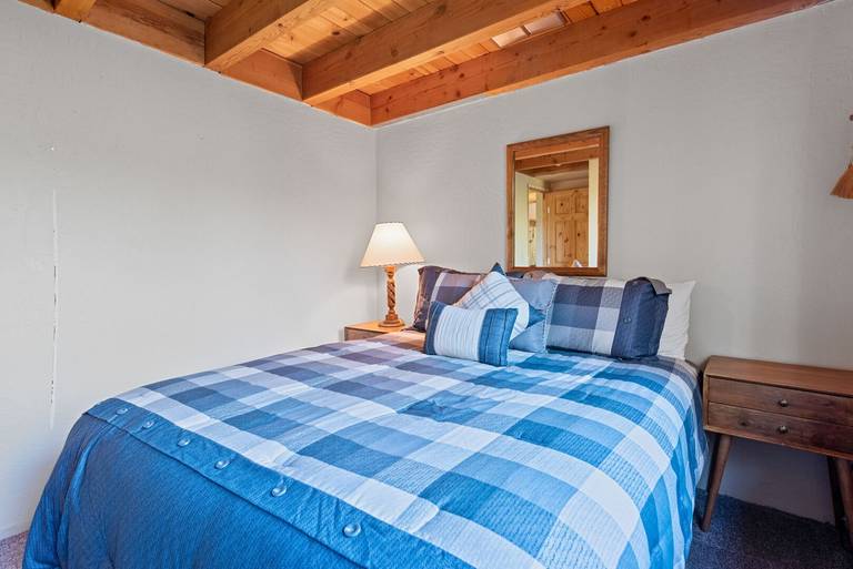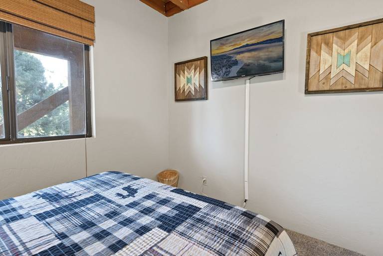 ROOMS & BEDS - 3 bedroom, 2 baths. Downstairs master bedroom has a queen bed, TV, and bathroom. Upstairs second bedroom has a queen bed. Upstairs third bedroom has a twin bed with trundle and balcony.