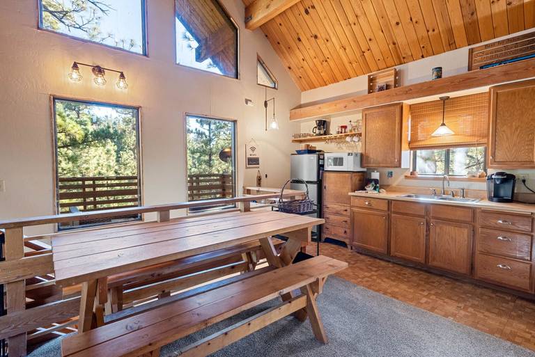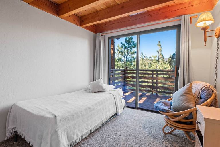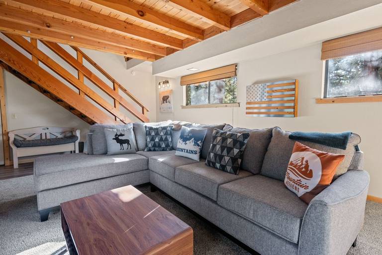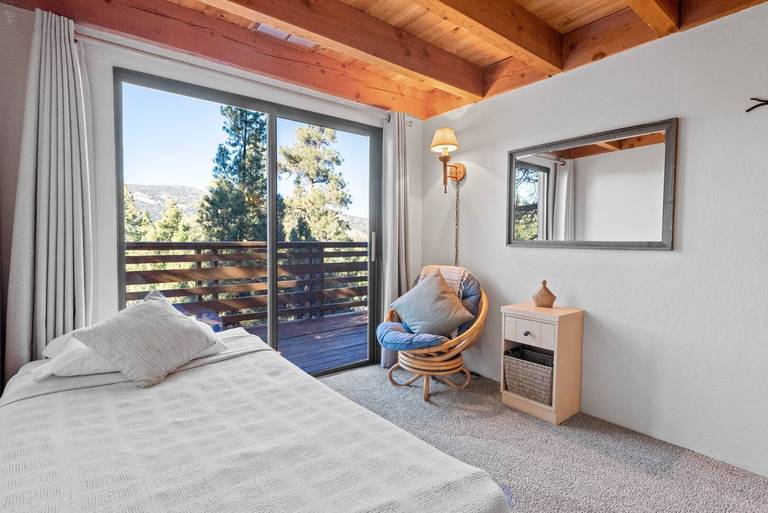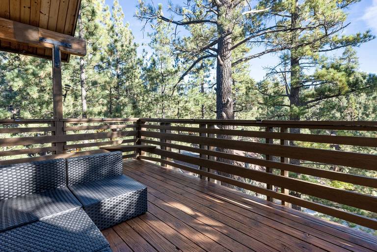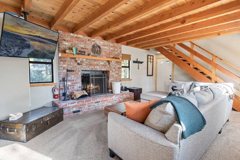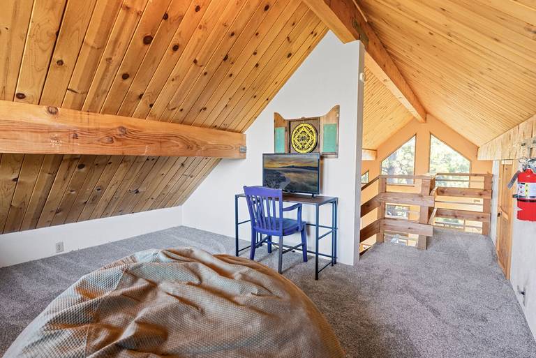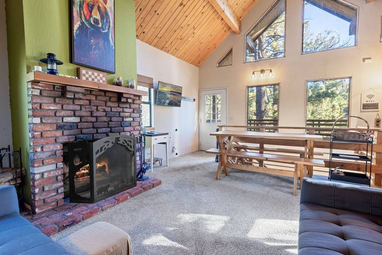 This modern two-story cabin is nestled in the desirable Big Bear City area close to National Forest hiking trails and the National Forest. A short drive to the lake, The Village, the slopes, Alpine Zoo, and more. Enjoy the serene mountain environment on this beautiful property.