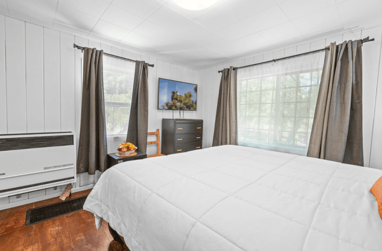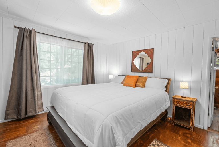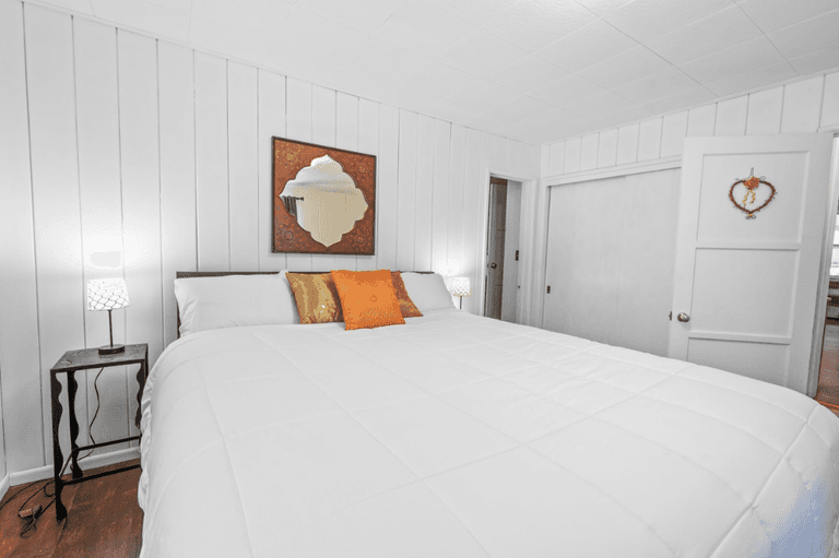 ROOMS & BEDS - 3 bedrooms, 2 baths. Downstairs master bedroom has a king bed, TV, and private bath. Upstairs second bedroom has a queen bed, sitting area, and bathroom. Downstairs third bedroom has a queen bed. Extra blankets and pillows are available.